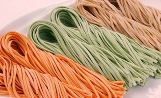 海藻酸鹽作為一種天然高分子多糖,具有良好的吸水、持水、成膜等功能,可降低淀粉失水造成的回生老化,還具有良好的組織改良、促進面筋網絡形成的作用,能夠增加米面制品的彈性,防止冷凍米面制品表皮開裂。應用于冷凍鮮面、方便面等面制品中具有強親水性、粘結性,可改善面團的組織結構,增加面條的強度及延展性,提高貨架期和耐煮性;用于水餃、包子等速凍食品中的面皮和餡料中,可防止餡料塌陷、表面凍裂,提高水餃皮的透亮度,增加彈性和光滑感,減少產品的破損率。